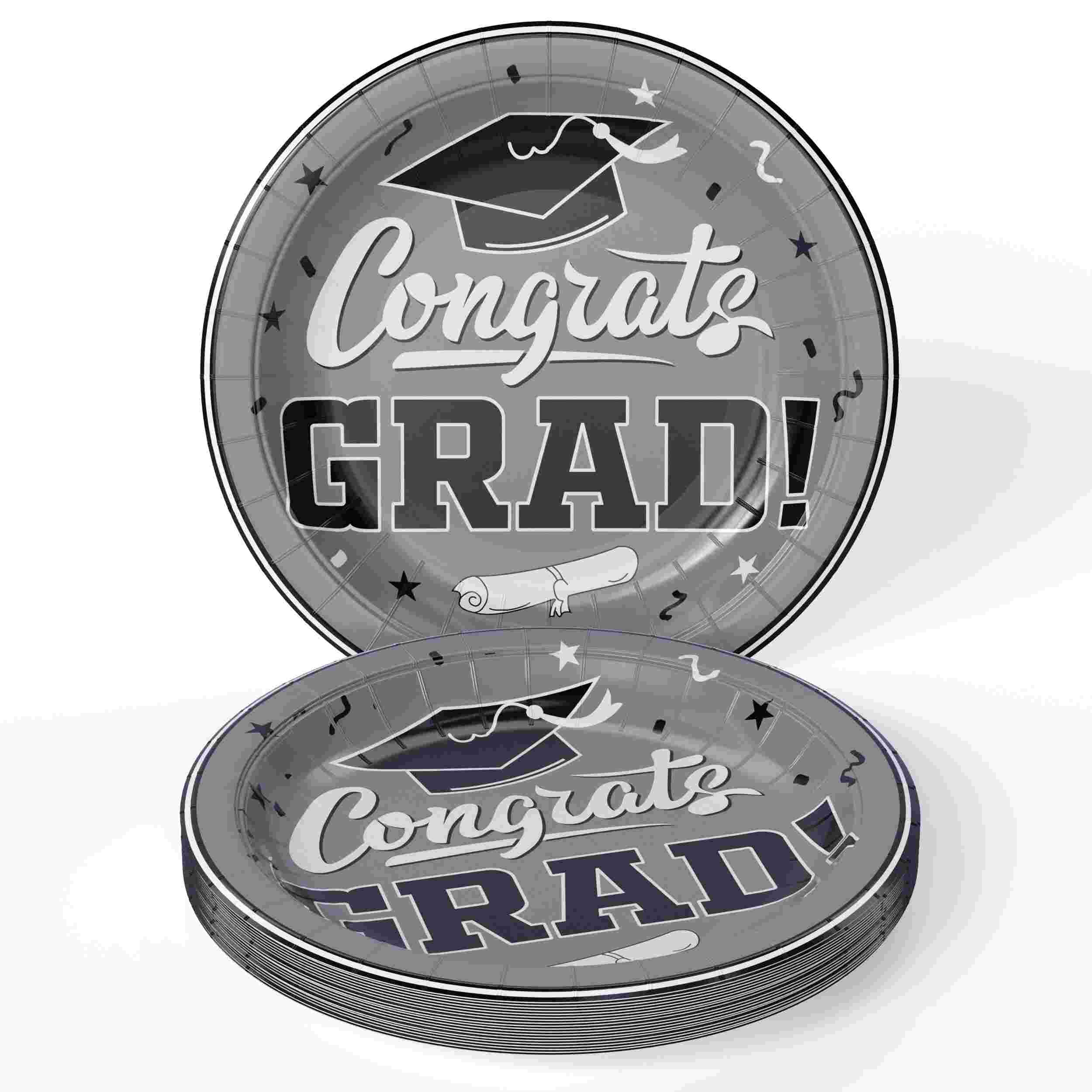 Make your graduation party stand out with our 9 In. White/Silver Graduation Plates! These plates come in a pack of 24, perfect for celebrating with family and friends. The sleek white and silver design adds a touch of elegance to any table setting. Take a risk and elevate your party game!