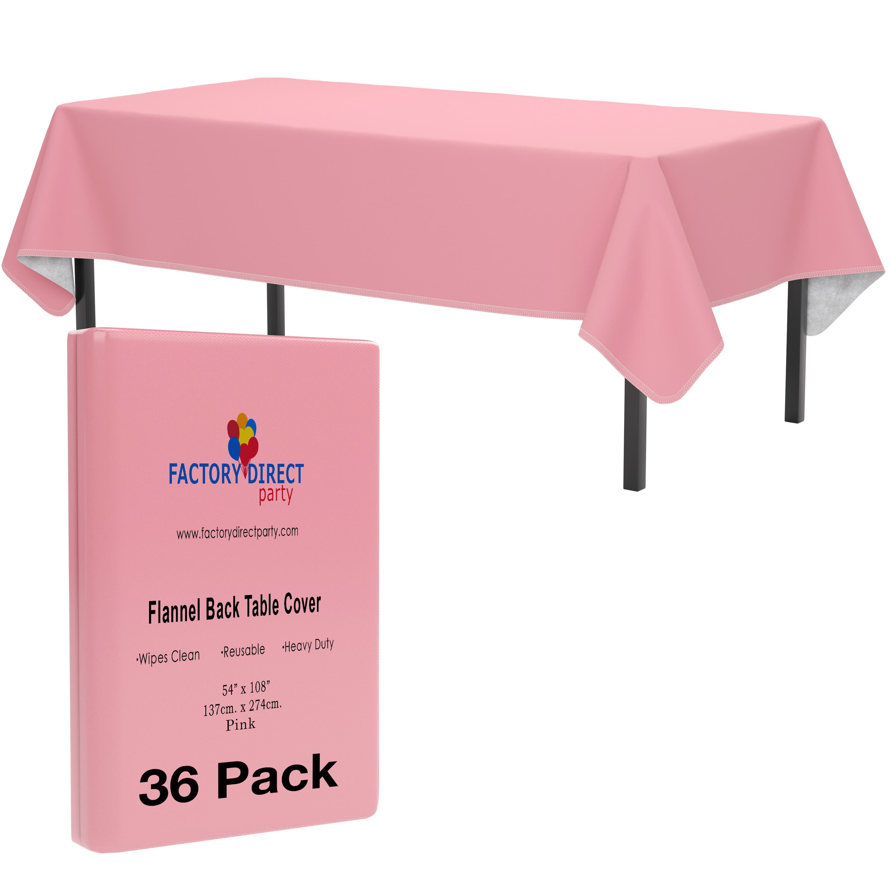 Pink Flannel Backed Plastic Table Cover 54 In. x 108 In. | Case of 36