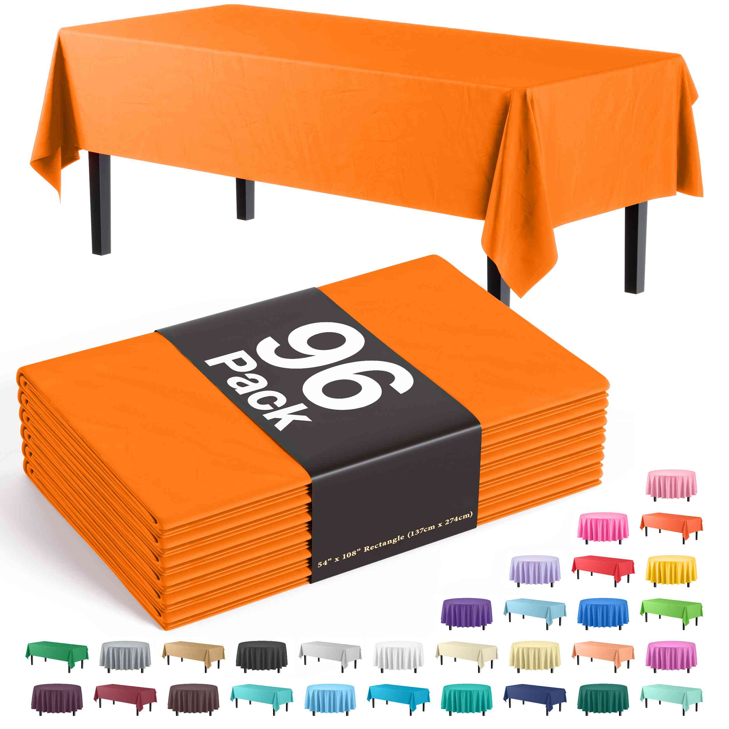 Premium Orange Plastic Table Cover | 96 Count