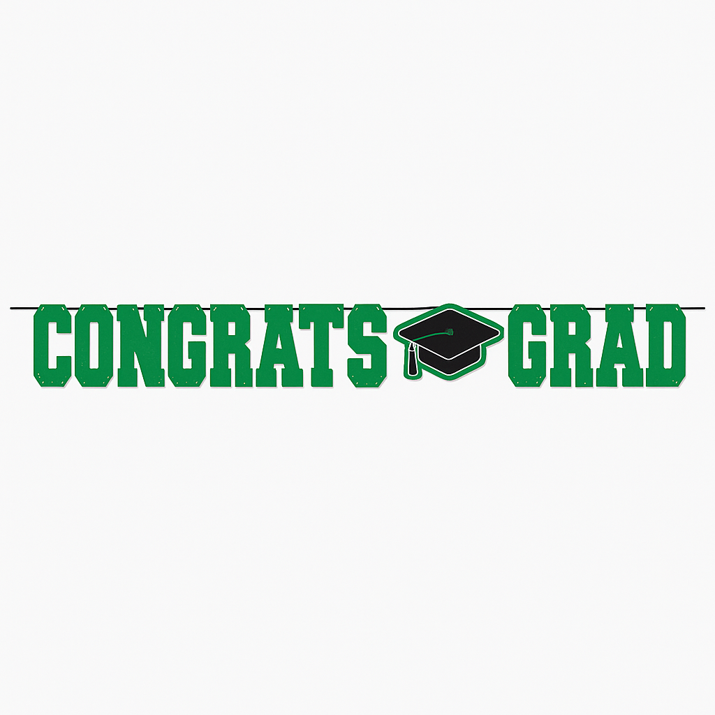 "Congrats Grad" Green Letter Banner for Graduation Celebrations