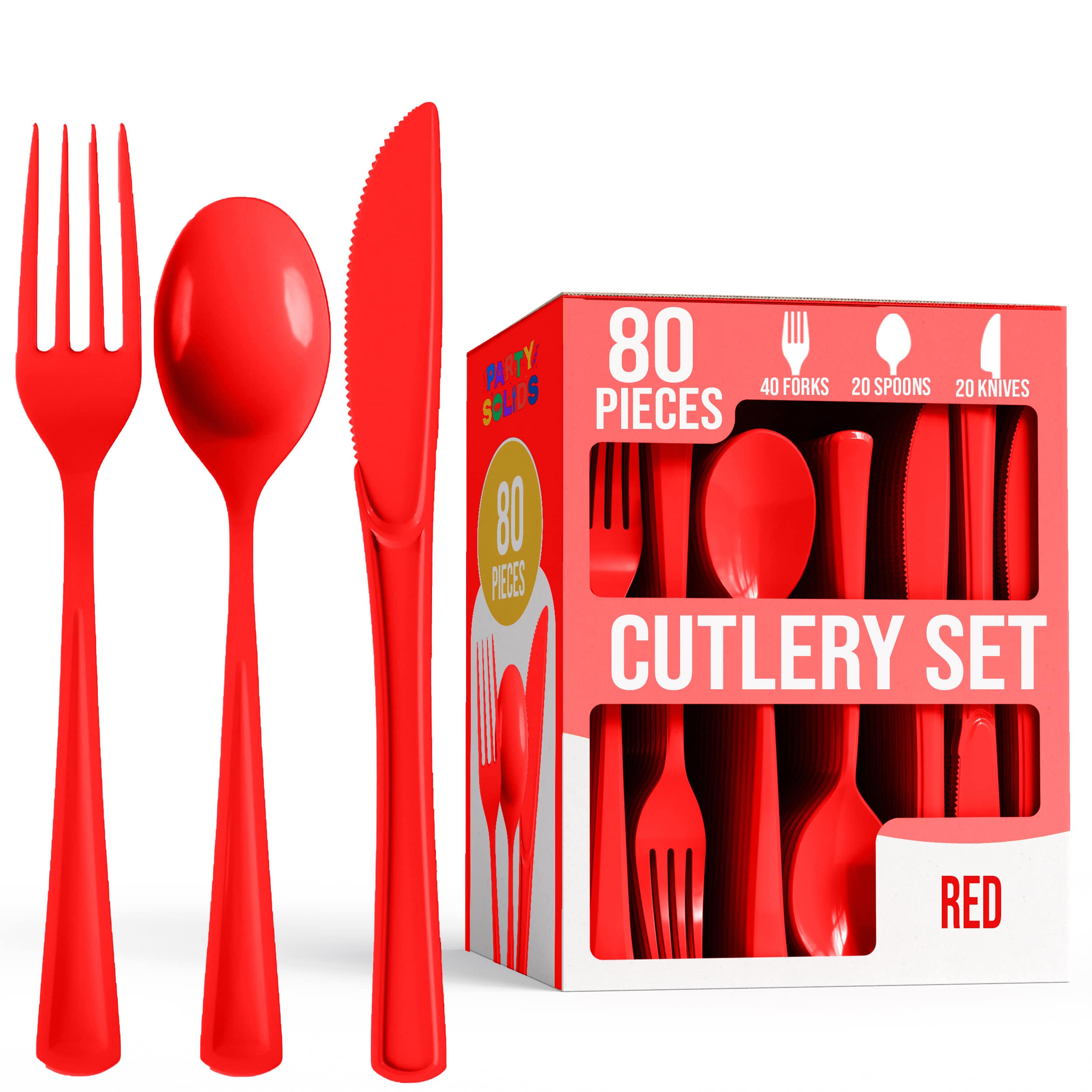 Elevate your events with the Heavy Duty Red Cutlery Combo, featuring 80 robust pieces crafted for strength and vivid style. These boldly colored utensils are designed to handle any feast with ease, ensuring you never compromise on durability or flair. Perfect for parties that demand reliability and a striking pop of color.