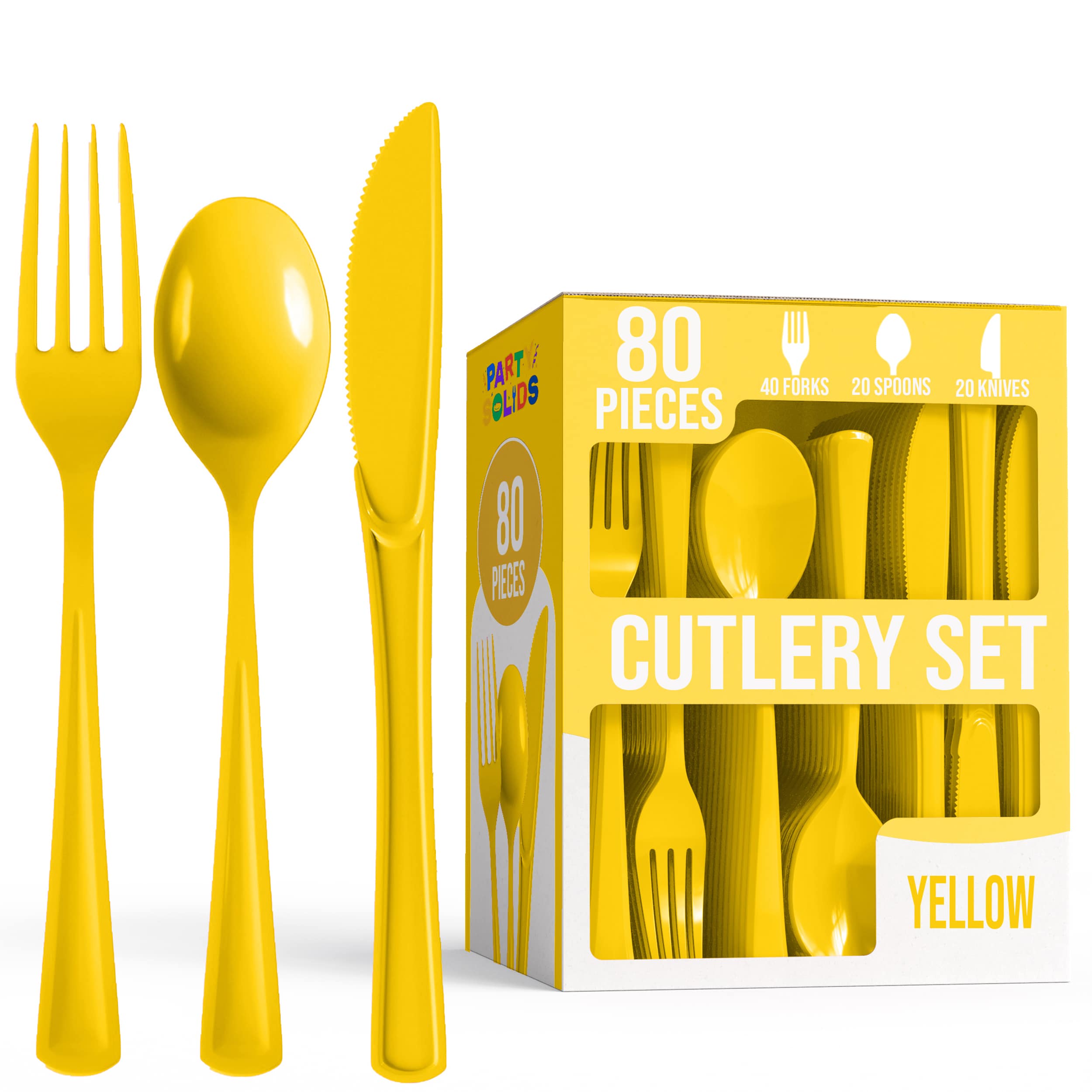 Make a bold statement at your next event with the Heavy Duty Yellow Cutlery Combo. This vibrant set of 80 sturdy pieces is built to handle the toughest meals while adding a splash of daring color. Perfect for those who want practical strength without sacrificing style.